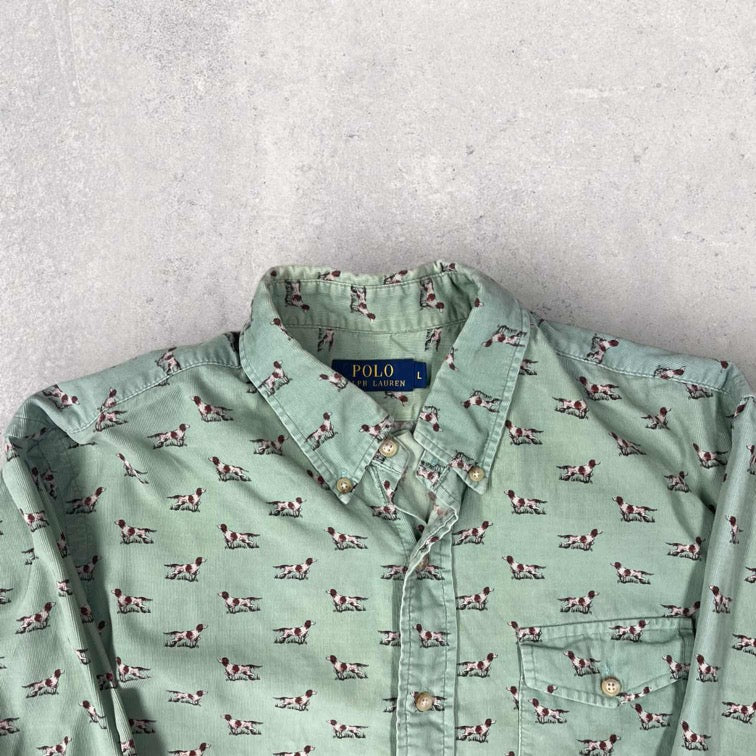 Polo Ralph Lauren Corduroy Allover Print Dog Shirt - L